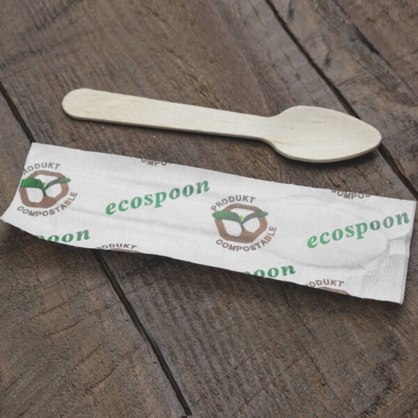 Κουταλάκι ξύλινο 9.5cm συσκευασμένο σε χάρτινο περιτύλιγμα Ιδανικό για την αντικατάσταση των αντίστοιχων πλαστικών κουταλιών μίας χρήσης. Μια 100% φυσική λύση για την προστασία του περιβάλλοντος.