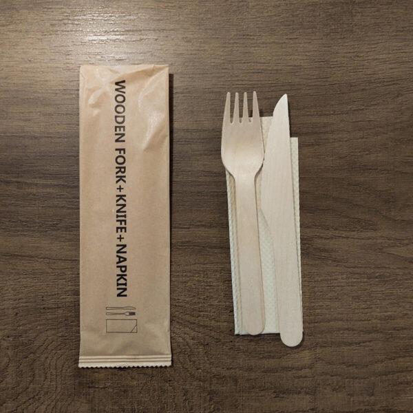 Ξύλινο Κουβέρ 16cm (ΠΙΡΟΥΝΙ + ΜΑΧΑΙΡΙ + ΧΑΡΤΟΠΕΤΣΕΤΑ) (50τμχ)